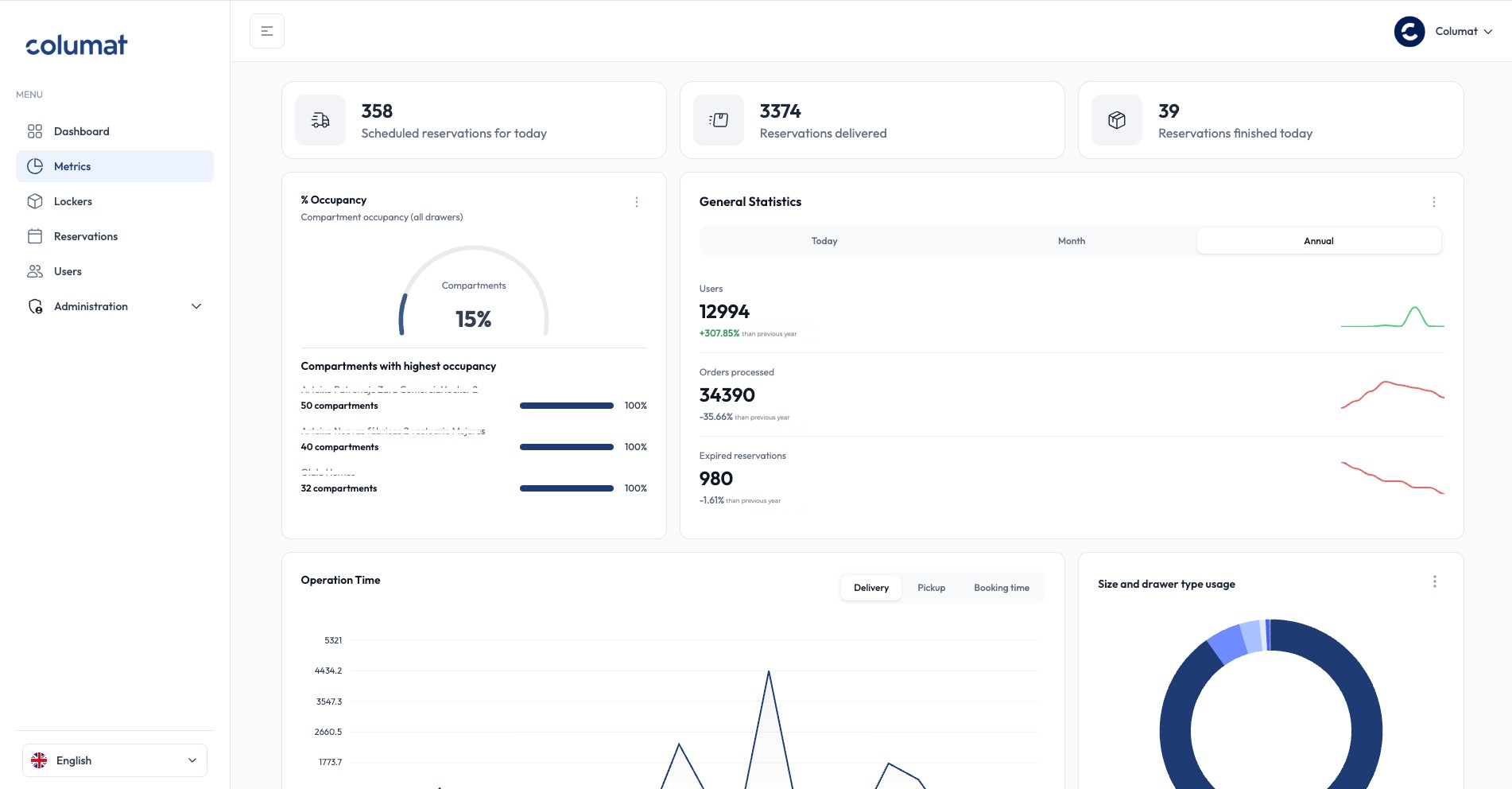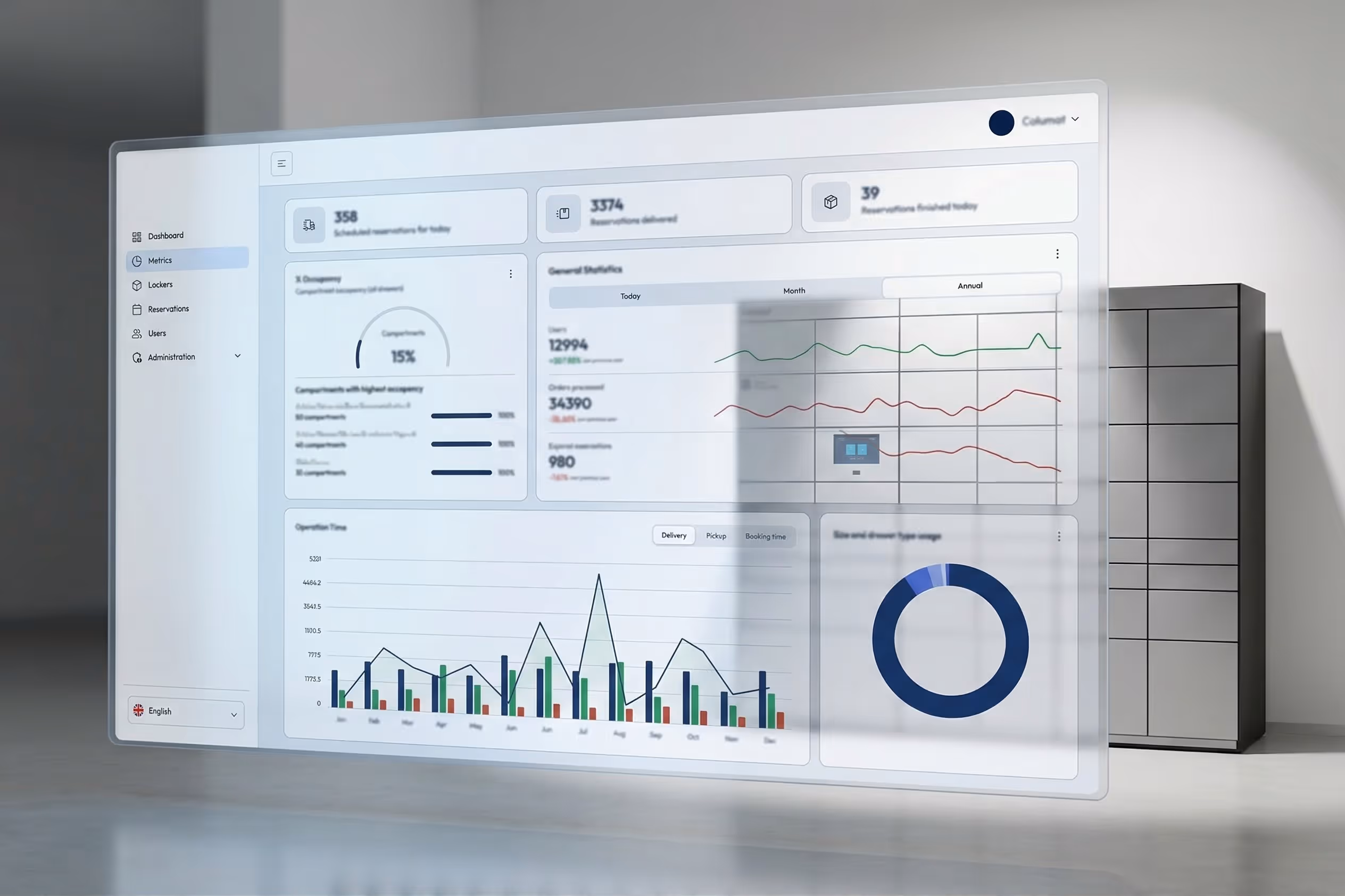 Analyze compartment usage and occupancy across your locker network.